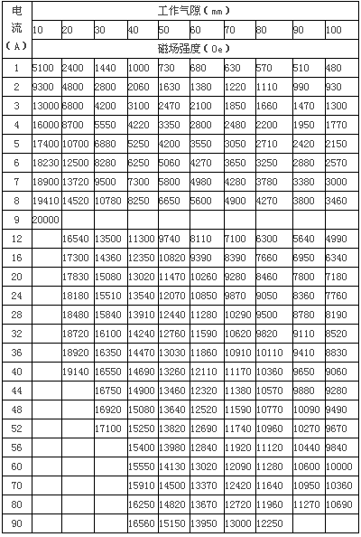 3、磁場(chǎng)參數(shù)表